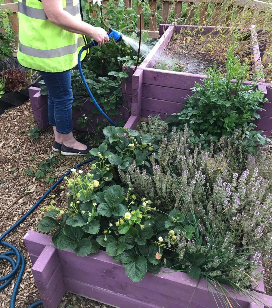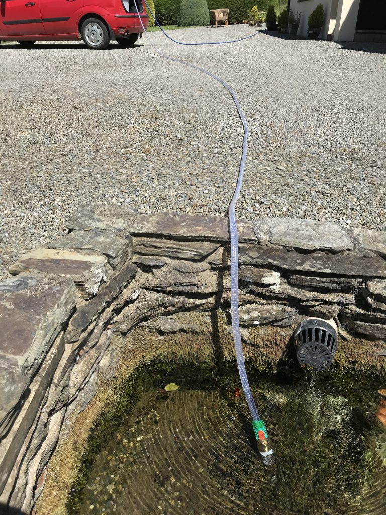 Watering the vegetable garden in the Community ParkWatering flower baskets at Ferns CastlePumping water directly to the hose from a natural spring