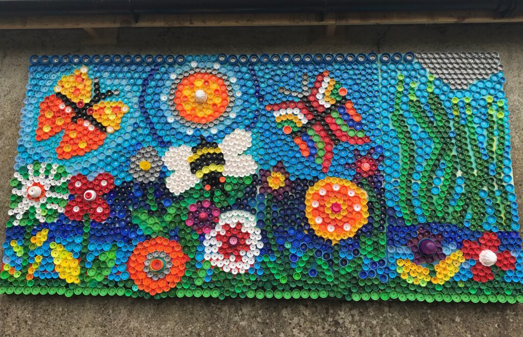 The educational mural made from plastic bottle caps sends the message to the wider community about the importance of refusing/reducing/recycling plastic to help the environment and prevent plastic waste from damaging our marine life. The ocean theme mural will raise awareness of the harmful effects of plastic bottle caps on marine life and the wildflower/wildlife to raise awareness of the effects of plastic to our environment, wildlife and plants.