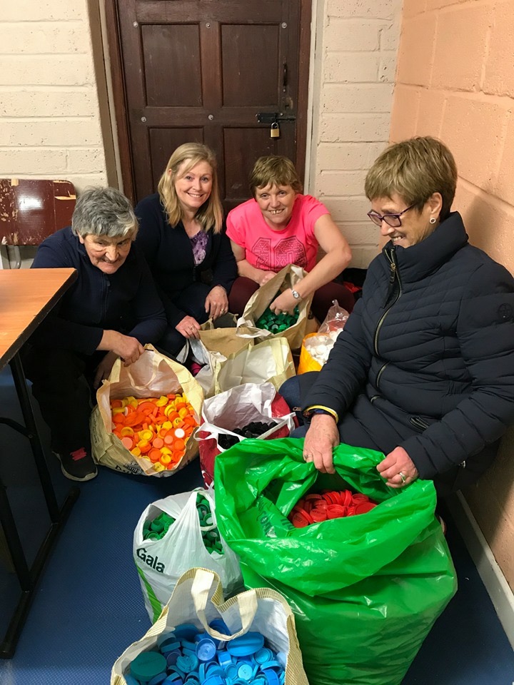 Early last year Ferns Tidy Towns carried out a survey on the street to see how members of the community were managing to reduce single use plastic waste. They were surprised to discover that there was some confusion around whether or not plastic bottle caps could be recycled. A staggering 60% of those surveyed were putting them in their household waste bin! During litter picks there was also a considerable number of plastic caps discarded along the footpaths and communal areas.