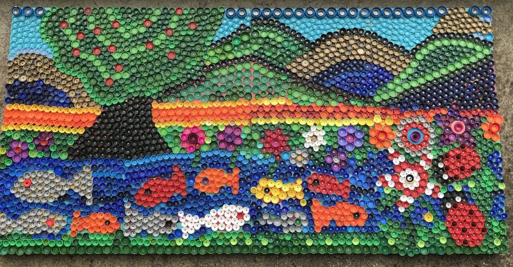Bringing the vision of a ‘Plastic Free Ferns’ to life by creating the bottle cap murals.
