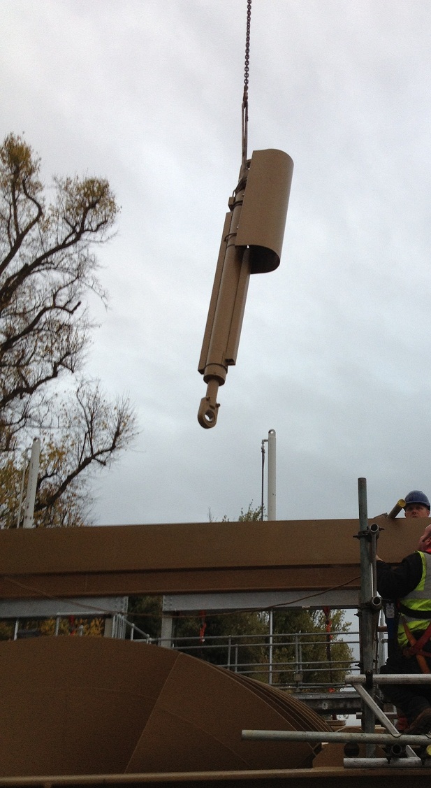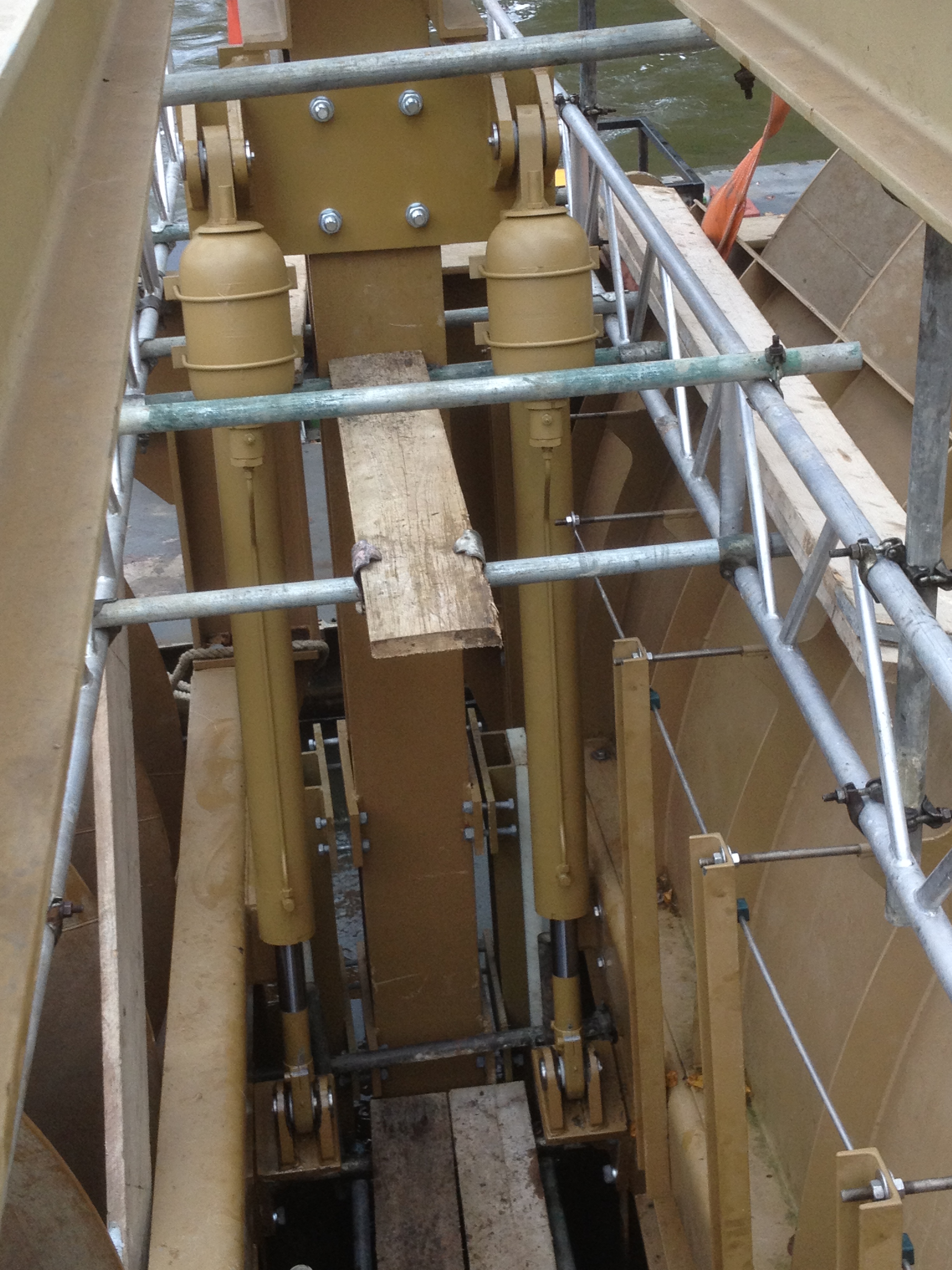 Four Hydraulic Rams have been installed to automatically move and adjust the two 94 tonne turbines as the river level changes.