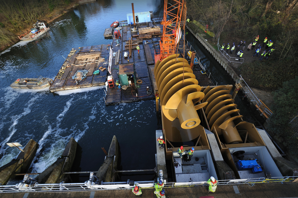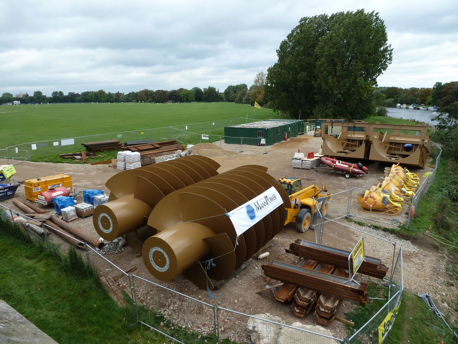 The project, which was granted planning permission in August 2008, will consist of two four meter diameter Archimedes screw type turbines occupying two bays in the Romney Weir and will generate 300 kilowatts per hour at peak times, enough to power 600 households. It is estimated the turbines will reduce carbon dioxide emissions by 790,000 kilos per year. This clean, green electricity will be used to power Windsor Castle.