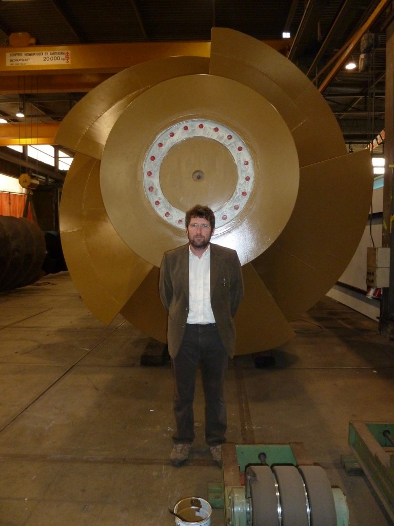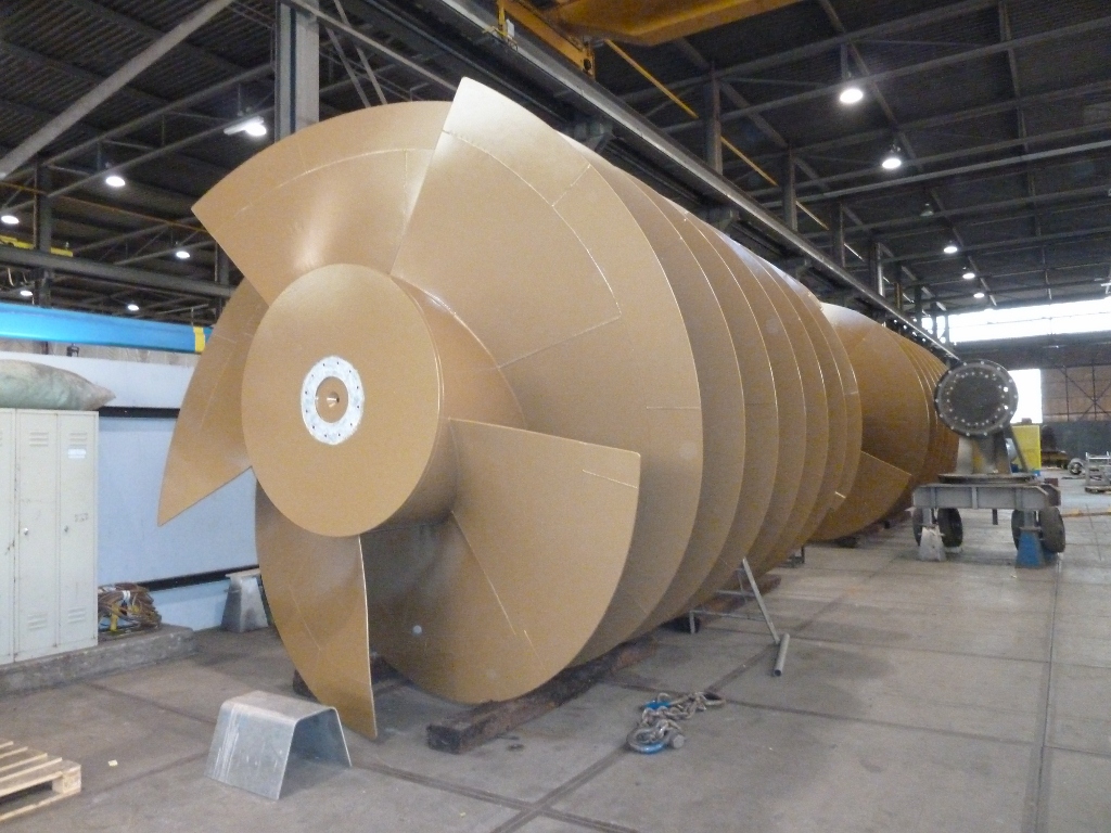 Mann Power Consulting Ltd., the UK based Archimedean Screw specialists designed the equipment for the Romney Weir project. After various consultations it was decided that the most suitable turbine for the site was an Archimedean Screw Hydro Turbine which was manufactured by Landustrie based in Holland. The Landy screws are four meters in diameter, 6 meters long and each has the capacity of 150 kW. A unique feature of each screw is the number of blades or helices; here being 5 instead of usually 2 or 3. This is the first five bladed Archimedes Screw Hydro Turbine to be installed in the world to date.