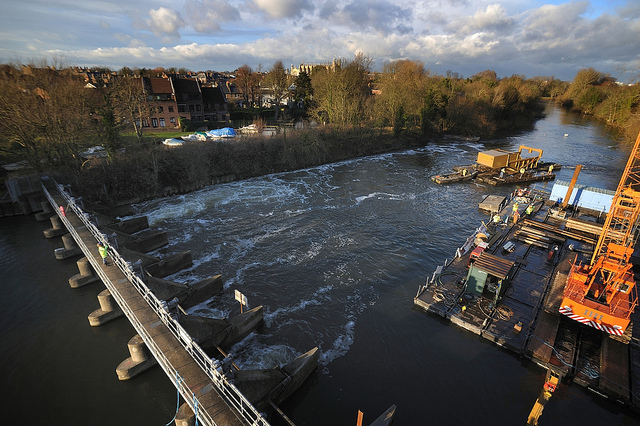 Romney Weir ‘A’ is in Windsor. The weir was built in the 1790’s and is used to control water levels between Old Windsor lock and Boveney lock. The Romney Weir hydro scheme will utilise just two of the ten existing weir bays and have little effect on current weir operations. Weirs were originally built to control water levels for navigation and flood risk purposes but can now take advantage of new technology to provide energy.