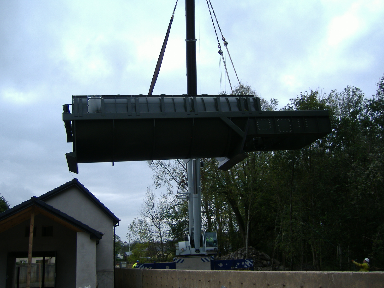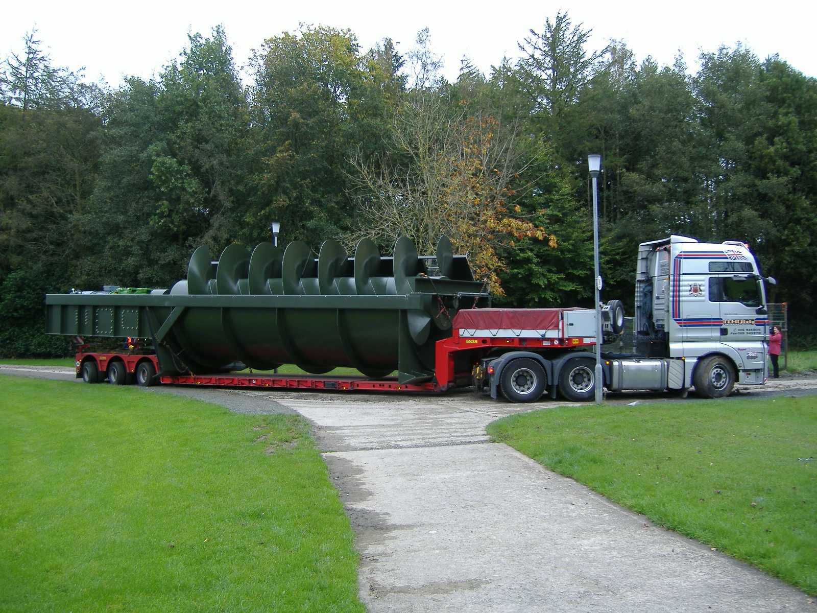 Arriving on siteAlmost 15m long the screw weighs approximately 35 tonnesOffloading from the lorryWith a diameter of 3.5m this screw can take a flow rate of up to 5.5m3/s
