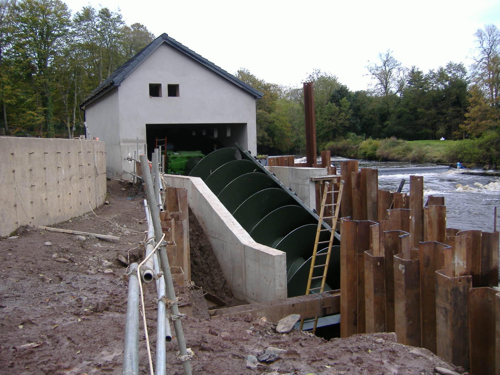 The Council was very conscious of the importance of the Camowen River as a fishery, and of the concerns of anglers. After various consultations it was decided that the most suitable turbine for the site was an Archimedean Screw. The Archimedean Screw turbine provides a fish-friendly alternative to conventional turbines, ideally suited to low-head (1m-10m) sites, and sites with fish protection issues.