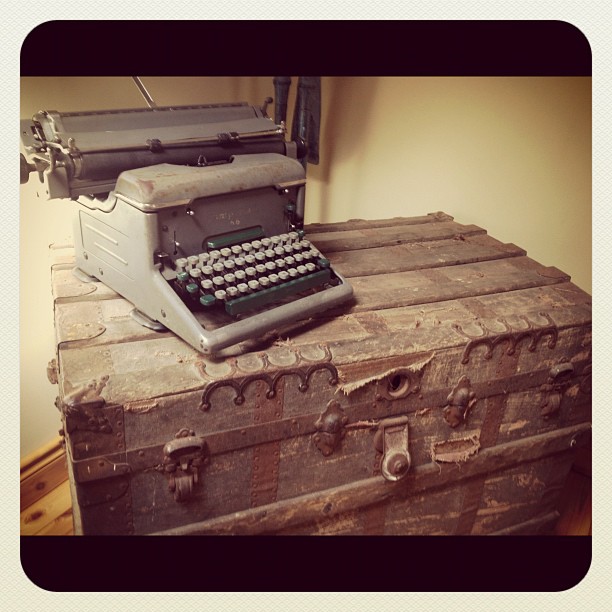 It struck me as I was reading it that life was so much simpler back then. I remember my mother washing out the milk bottles (the two in the photo escaped as I found them while doing a litter pick!), using brown paper to cover school books, washing the nappies by hand and we walked or cycled to the shops. My first introduction to typing was on the typewriter in the photo above (that’s not that many years ago!!). I remember strapping it to my bicycle and cycling four miles to the classes and back home again.