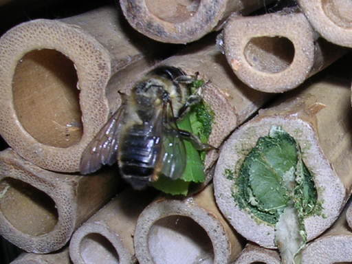 Holes for Solitary Bees: There are many different species of solitary bee and all are excellent pollinators. The female bee lays an egg on top of a mass of pollen at the end of a hollow tube, she then seals the entrance with a plug of mud. A long tube can hold several eggs. Hollow stems, bamboo canes or holes drilled in blocks of wood make great habitats for the solitary bees. When it comes to drilling holes in wood, take into consideration the fact that different bee species are drawn to different sizes of holes for shelter and egg-laying and remember to use wood that is preservative free.  As mentioned above you can make a home for solitary bees by collecting hollow stemmed canes and placing them in plastic bottles or lengths of drain pipe. You can also build a wooden shelter similar to a bird box. Solitary bees like warmth, so place your habitat in a sunny spot.