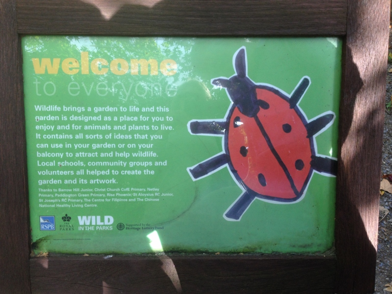 Going wild at Regent's Park wildlife gardenThe wildlife garden also has an interesting interactive sound bench powered by a solar photovoltaic panel. Visitors can sit and listen to tales from the local community on how their  parks are such special places. Over the years the amount of wildlife attracted to the garden continues to rise with finches, woodpeckers, long tail, blue and great tits all visiting with great regularity. Bird boxes, bat boxes and bird feeders are dotted throughout the garden to help encourage and increase wildlife visitors.