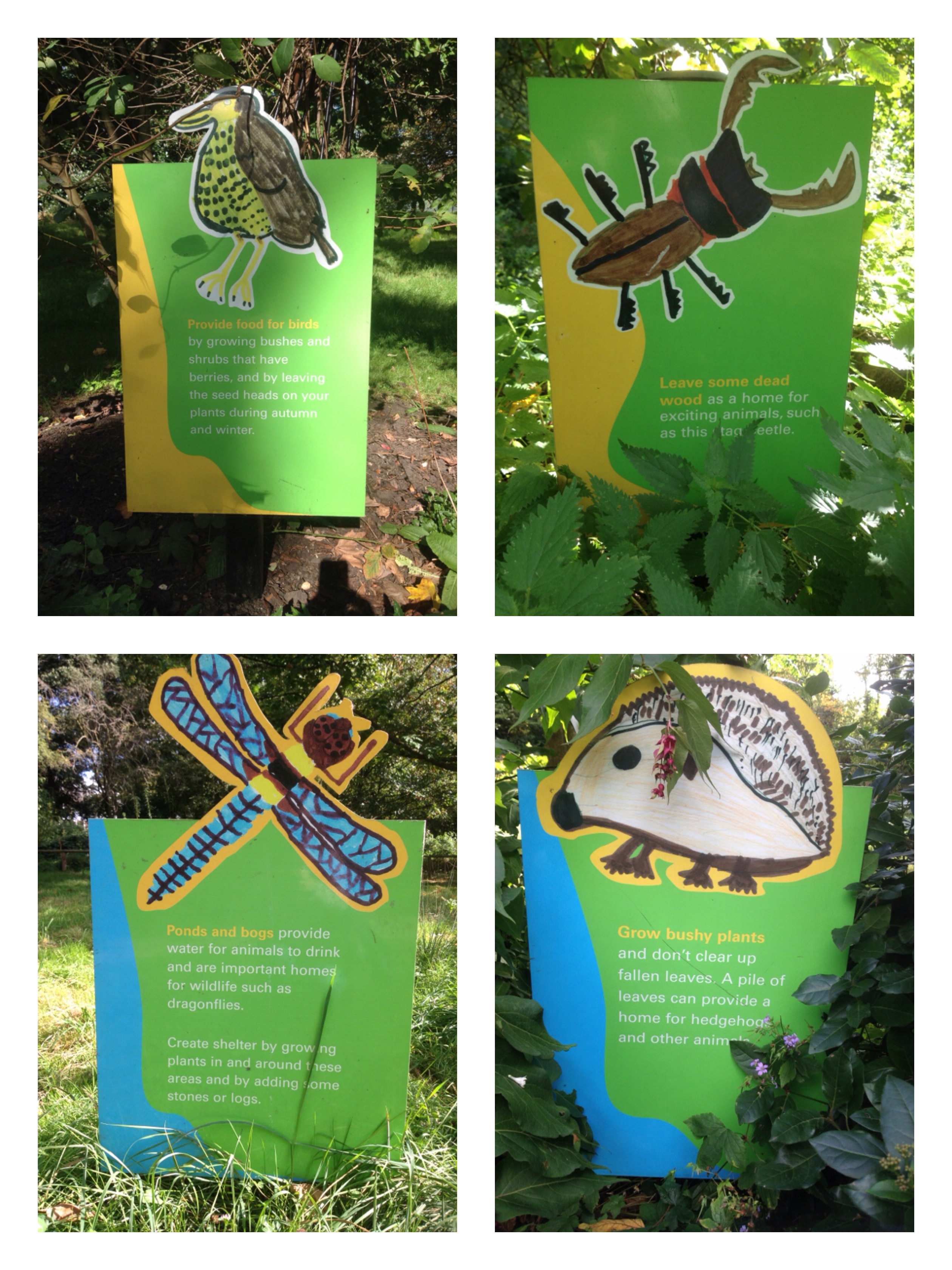 IMG_6043 (800x600)Local school children have been particularly busy with the creation of artwork which has been incorporated into the garden’s information boards. The boards provide information on how to increase the species of wildlife in the garden. Planting shrubs with berries to feed the birds in the Winter and leaving dead wood and fallen leaves for hibernation are just some of the advice shown on the colourful information boards.